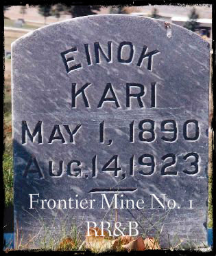 coal mine on 14 August 1923 at the age of 33 in Frontier, Wyoming.(3-4) He was buried on 17 August 1923 in Kemmerer, Wyoming.(3-4) At the time of his death, Eino was married with